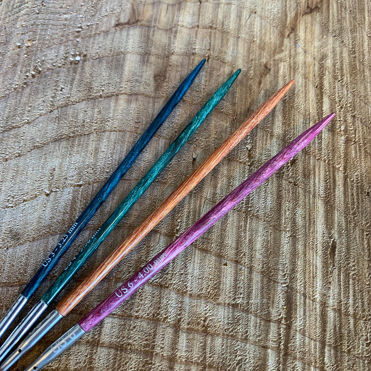 Knitter’s Pride Symfonie Dreamz Fixed Circular Knitting Needles come in a range of radiant colors for organizational options. Perfect points, flawlessly tapered, and ideal for all yarns and every project. A smooth join ensures easy stitch glide and no snagging. And the polished warm wood surface works effortlessly with every type of yarn without slowing down your knitting rhythm.