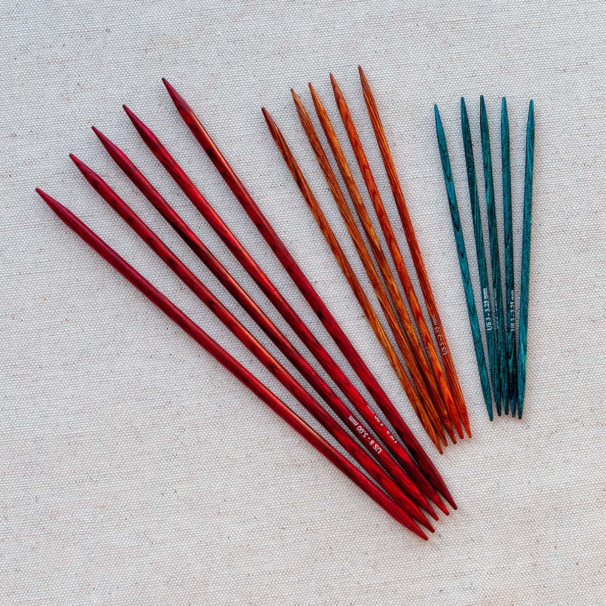 Each Knitter's Pride Dreamz needle size is a different color which makes finding the one you’re looking for easy a quick and easy task. Each DPN set contains of 5 needles of the same size and are available in 5″, 6″ and 8″ lengths.