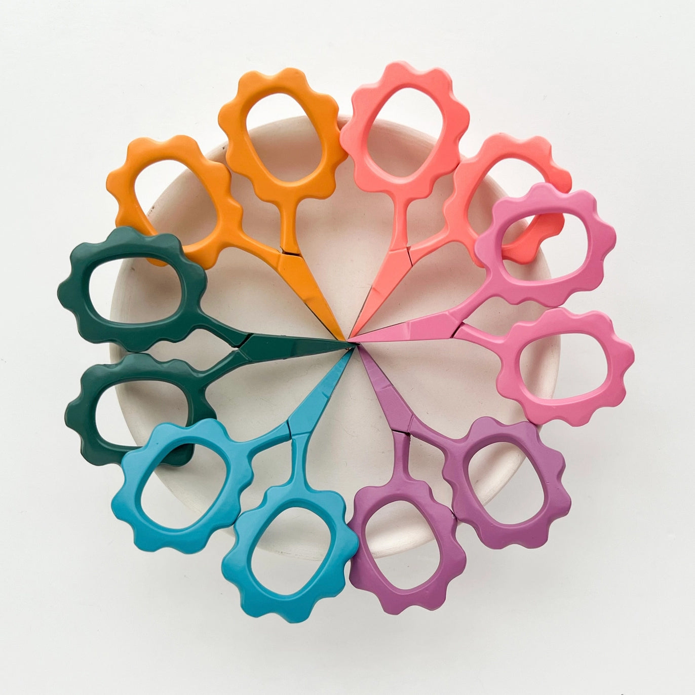 Treat yourself to a sweet pair of Small Flower Scissors. We guaranteed you'll delight in using them for any and all of your on-the-go crafting needs. The pint-sized, sharp blade measures at just 2.5 inches and fits perfectly in a notions tin, any sized project bag, or purse.