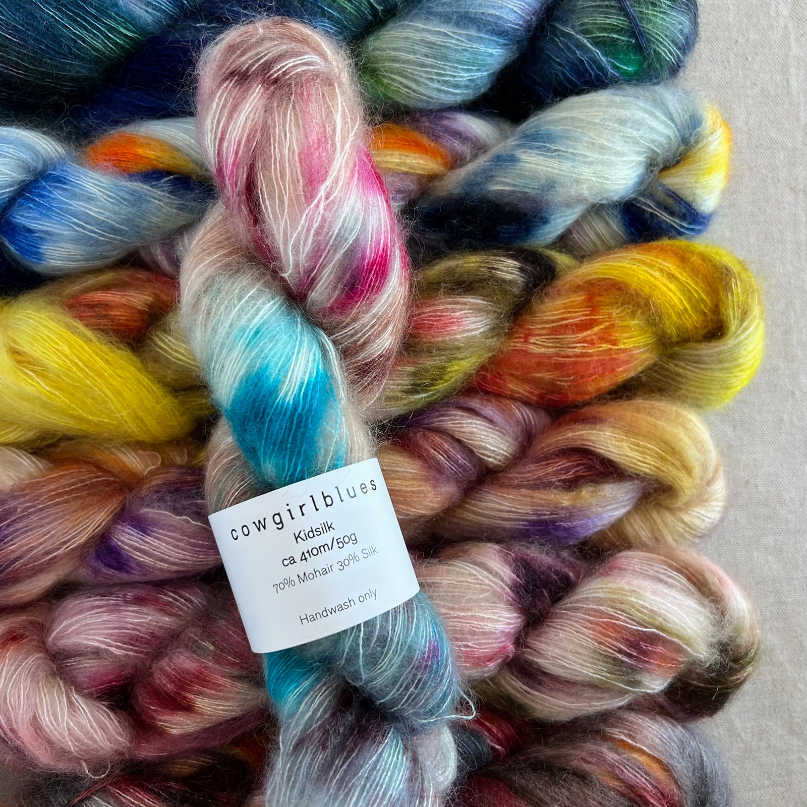 Indulge in the luxurious softness of Cowgirlblues Kidsilk yarn! Made from a blend of South African kid mohair and silk, this lace-weight yarn is a lovely addition to any project begging for that dreamy, gossamer halo.