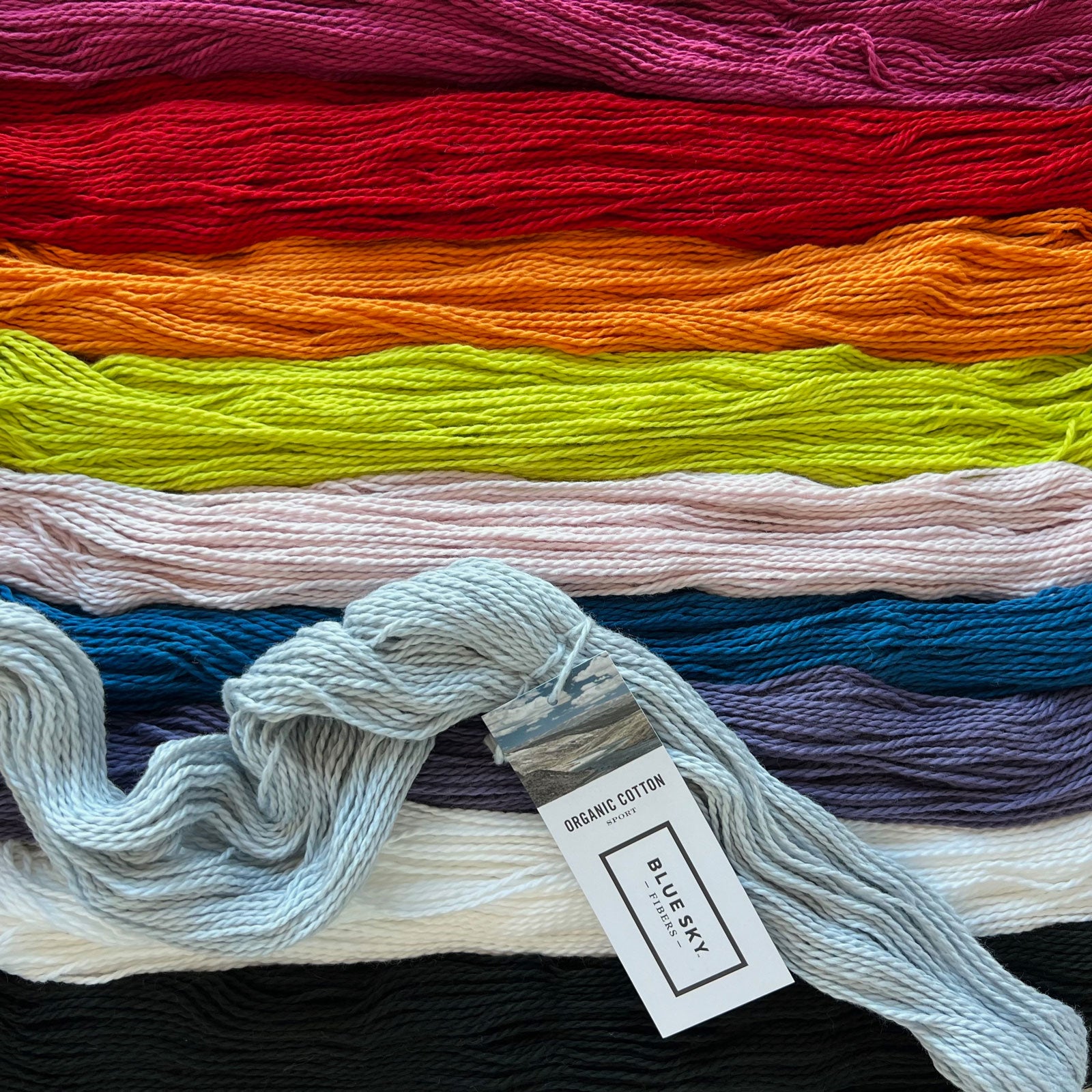 Soft, lightweight, and versatile for all seasons, Blue Sky Fibers Organic Cotton Sport is perfect for any warm weather or vegan knit and crochet project. Worked at the suggested gauge of 5-6 stitches per inch, the resulting fabric has a beautiful balance of drape and stitch definition. But this yarn also works well at other gauges, creating interesting textures and patterns. Environmentally-friendly, soft and smooth to the touch, Blue Sky Fibers Organic Cotton Sport is a favorite at any time of year!