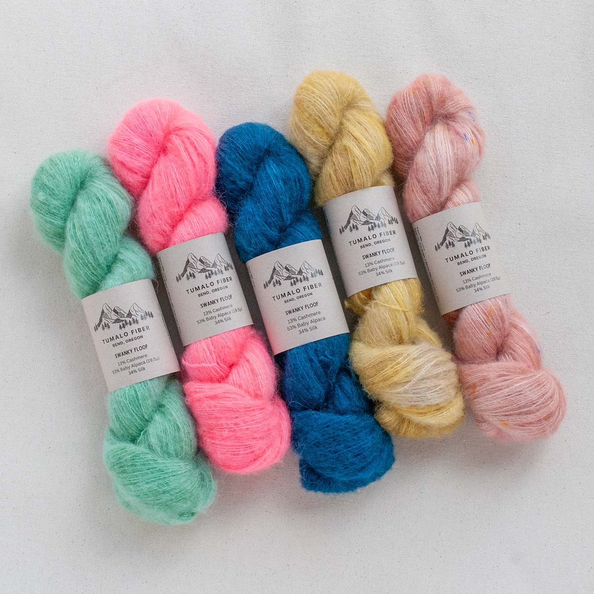 Each strand of Swanky Floof is impossibly airy, yet rich with warmth, making it perfect for gossamer shawls, dreamy layering pieces, or for adding just a hint of fluff to your favorite knits and crochets. The silk content lends a luminous sheen and strength, while the alpaca and cashmere wrap you in gentle luxury.